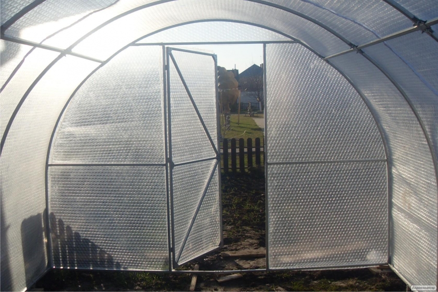 - Pétillante les revêtements en film sont très similaires à ceux dans lesquels sont emballés des produits fragiles. Ils ont un excellent degré de transmission de la lumière et le niveau d’isolation thermique peut être comparé à un revêtement de polycarbonate. Le degré de leur force est faible, si vous ne tenez pas compte des espèces spéciales, bien qu'il soit approprié de faire pousser des plantes dans de petites serres.