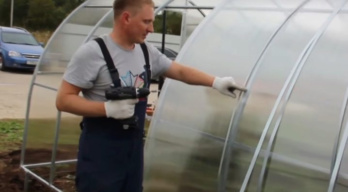 En règle générale, ils effectuent d’abord des opérations d’installation sur les parties principales de la structure, puis fixent ensuite le film sur les extrémités de la serre. Les parties restantes du revêtement au bas saupoudrées de terre pour éviter leurs rafales.