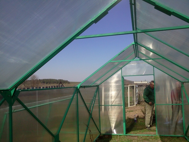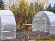 Les propriétaires remarquent qu'ouvrir les côtés à la limite simplifie immédiatement le désherbage et les autres travaux. En ce qui concerne la conception de "l'infirmière", il est recommandé de choisir en raison de la fiabilité accrue. Même le printemps tardif avec une telle serre ne pose pas de problème dans la ferme subsidiaire.
