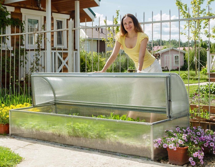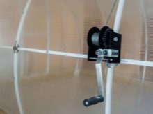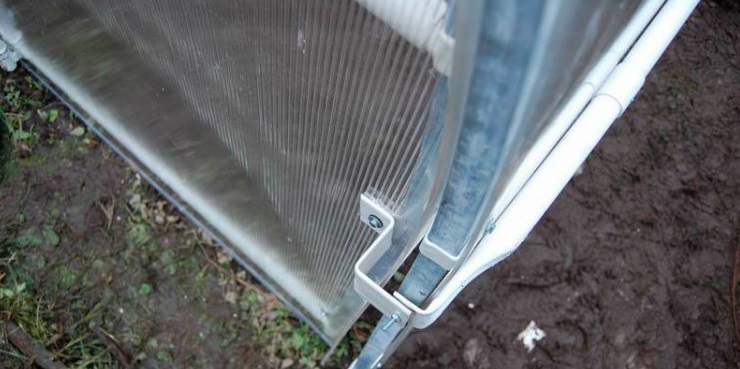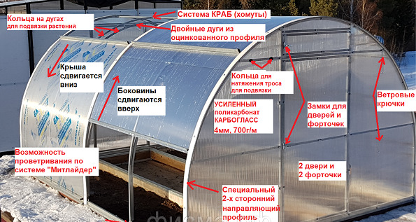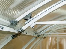 La demande pour une solution comme un «cabriolet» s’explique par la facilité d’installation. Les évents sont conçus de manière à ce que le toit ne soit déplacé que sur les côtés. Il n'y a pas besoin de le nettoyer. Avec une température de l'air positive, cette serre est utilisée en mode de ventilation. Et quand la saison froide arrivera, il ne faudra que déplacer une partie du toit. Ensuite, la couverture de neige se formera rapidement et couvrira les plantes vivaces du froid. "Convertible" a deux segments, de sorte que dans la même serre, vous pouvez faire pousser des cultures qui nécessitent des conditions de développement très différentes.