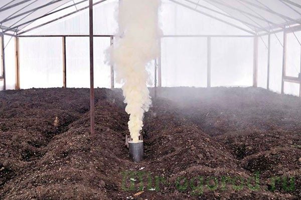 La fumigation de la serre est effectuée systématiquement. Ceci est obligatoire même lorsque vous utilisez des sols et des semences soigneusement testés. Pour la fumigation, prenez une bombe au soufre ou du soufre pur. En hiver, les pièces fissurées en verre ou en polycarbonate doivent être remplacées. En cas de gel sévère, ils éclatent rapidement.