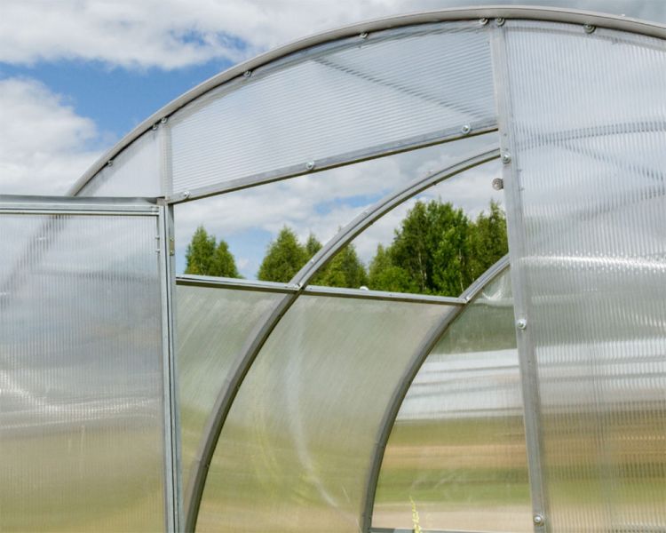 Le polycarbonate est plusieurs fois plus résistant que le verre et passe presque aussi bien la lumière du soleil. Lorsqu'il est utilisé, sa chaleur reste stable. Parce que les conceptions en polycarbonate conviennent mieux aux serres utilisées toute l'année. Mais vous ne devriez pas acheter une simple feuille et un matériau en nid d'abeille. Son nom est dû à la similitude de structure avec le nid d'abeilles. Le polycarbonate est en plastique, divisé en couches spéciales par des nervures et une couche intermédiaire d'air. C'est cette couche et contribue à assurer la conservation de la chaleur. Les rayons ultraviolets ne pénètrent pas dans le polycarbonate.