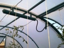 Outre le fait que l’auto-ventilation contrôle les indicateurs climatiques nécessaires, elle peut également empêcher les bactéries et les champignons nuisibles de pénétrer dans la serre. C’est pourquoi, pour économiser votre temps personnel et le microclimat normal dans les foyers, il est recommandé d’installer des actionneurs thermiques. Ils fourniront une ventilation de haute qualité, car chaque agriculteur sait que la présence d’air frais est la clé de la croissance rapide des plantes.
