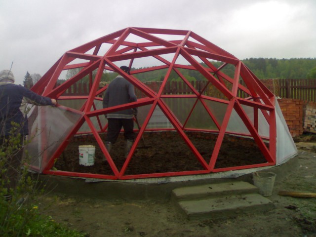 C'est important! L'avantage de ce dispositif est qu'il peut être utilisé dans une serre en polycarbonate et dans une "coupole" de matériau et de forme différents.