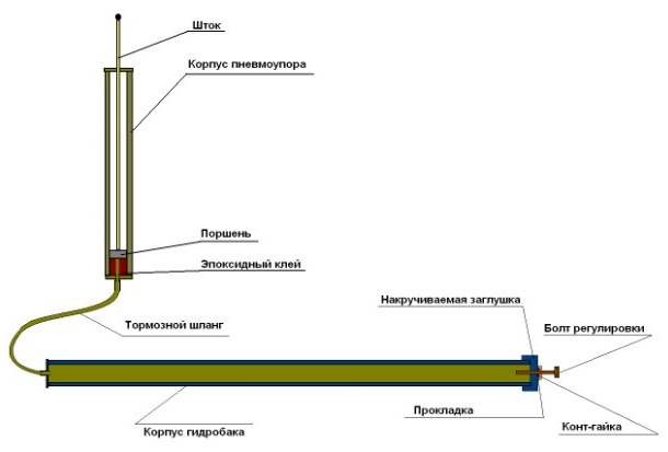 - préparation des matériaux - un ressort à gaz à partir d'un amortisseur de voiture, deux robinets et un tube en métal;
