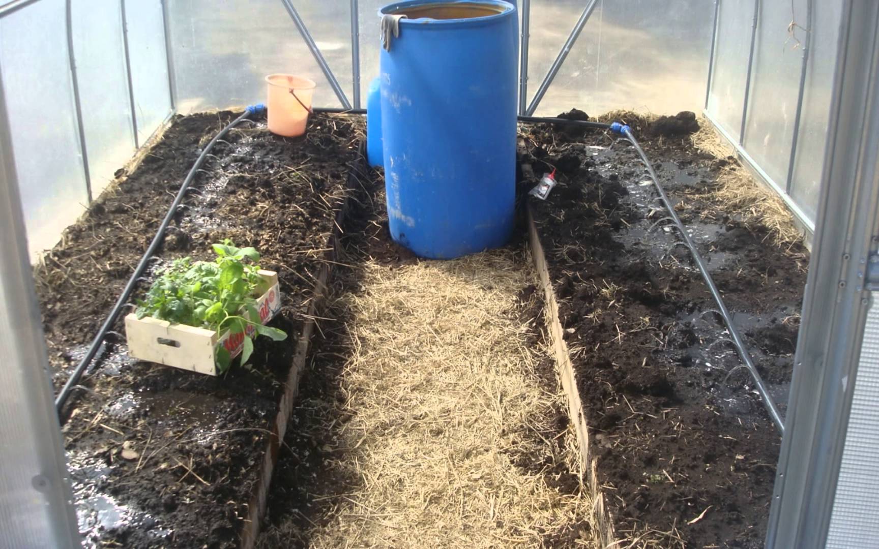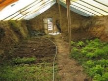 Outre l'introduction directe de matière organique, il est possible de la déposer sous la serre. Pour ce faire, creusez un trou où le matériau est placé, après quoi le trou se ferme. L'air chaud qui monte réchauffera le sol et la structure elle-même.