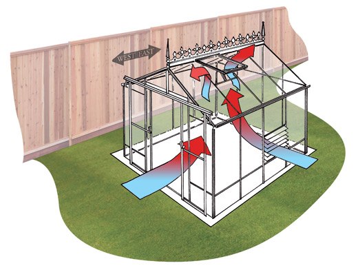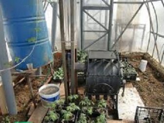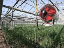 Pour les grandes serres (plus de 30 m²), un système de ventilation active est installé. Ceci est fait de manière à ce que le ventilateur d’alimentation soit au bas et le ventilateur d’extraction au sommet de l’autre extrémité de la serre. De cette manière, l'air frais entrant à l'intérieur traverse tous les niveaux de la structure et, après le travail, est éliminé. Il est à noter que certains systèmes de ventilation active sont équipés de logiciels permettant d’automatiser le processus d’échange d’air.