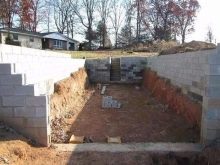 Ensuite, un mortier de sable, de gravier et de ciment est préparé dans un rapport de 5: 3: 1. Ils ont coulé des coffrages avec cadre. À ce stade se termine. Il est préférable de passer à la suivante pas avant l'expiration du délai de 30 jours. Une telle mesure permet à la fondation de se dessécher et de devenir plus forte.
