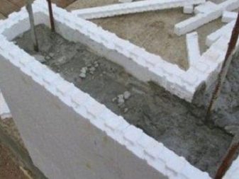 À la fin, le ciment est versé dans les blocs thermiques et l’armature insérée à raison de 2 pièces par bloc.Une meilleure solution consiste à produire un remplissage en plusieurs étapes d’une hauteur maximale de trois blocs à la fois.