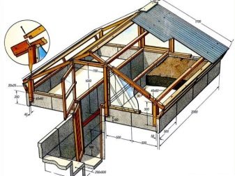 Lors de la construction d'un toit, envisagez une option que la plupart des gens peuvent maîtriser. À savoir, la construction de la charpente en bois. En vous concentrant sur les dessins de la photo, vous devez préparer des barres en bois. Et avant de commencer à travailler avec eux, ils doivent être recouverts d'un agent de protection. Les éléments préparés sont reliés entre eux au moyen de cavaliers et, lorsque le cadre est prêt, vous pouvez le peindre.