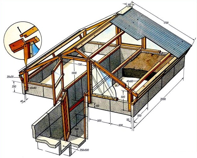 En ce qui concerne la taille de la serre, tout n’est limité que par les terres disponibles, les ressources financières et le but même de la construction. Il est clair que pour un usage personnel, il n'est pas nécessaire de construire une structure de 200 mètres carrés. m) Mais il convient de continuer à examiner les caractéristiques du thermos à effet de serre, à savoir que les normes en matière d’efficacité énergétique ne doivent pas dépasser 5 m de large et que la longueur n’est plus limitée. En outre, pour une meilleure pénétration de la lumière, un mur est élevé au-dessus de l’autre, mais cela n’est pas une condition préalable à la conception.