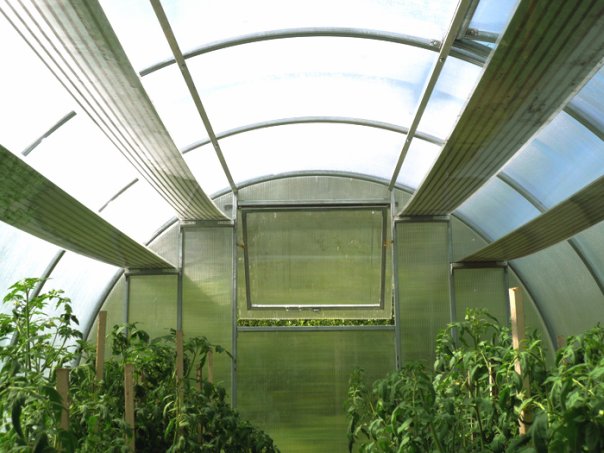 Un échange d'air constant est une condition importante pour un travail de haute qualité en hiver et dans toute autre serre. Dans les petites constructions, il suffit d'organiser la présence de plusieurs ouvertures hermétiquement fermées et d'effectuer la ventilation manuellement ou à l'aide de pistons automatiques.