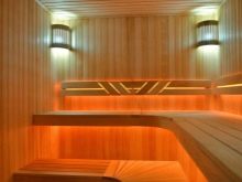 Le choix du type de garnissage pour un hammam dépend des propriétés de différentes essences de bois, des préférences données en faveur de l’un ou l’autre des bois, ainsi que des coûts supportés pour la finition de la salle. La planche de pin, ainsi que la doublure d’autres bois de conifères, avec tous ses avantages pour un hammam, n’est pas le meilleur choix, car elle alloue de la résine.