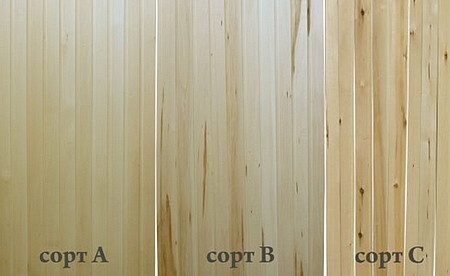 En choisissant la doublure, vous devez tenir compte de facteurs tels que la qualité du bois, qui détermine la durabilité du matériau. Les meilleures notes sont les planches des niveaux Extra, A et B. La doublure de classe «C» ne convient pas à l’appariement. Il n’ya pas de traces de nœuds à la surface des spécimens de haute qualité.C'est un indicateur très important, car les planches avec de telles «marques» vont inévitablement se fissurer dans les conditions du hammam au fil du temps.