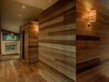 La doublure de cèdre était particulièrement populaire. Une finition de ce type allie avec succès beauté, fonctionnalité et fiabilité. Le matériau est utilisé pour décorer différentes pièces.