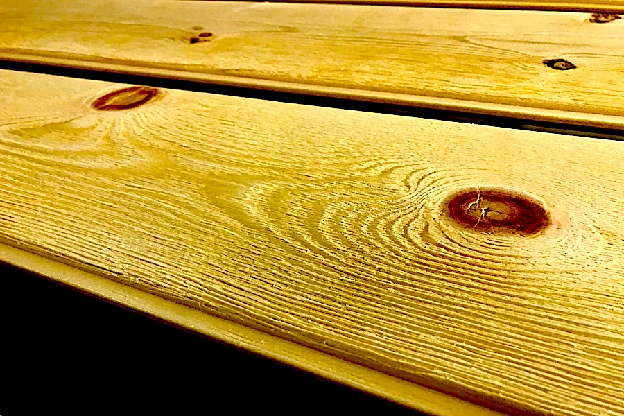 La couleur de la matière naturelle est diverse. D'une nuance neutre pâle à une couleur sombre et prononcée avec une teinte rouge et jaune. Les cernes annuels sont perceptibles, mais pas frappants, ce qui rend le bois plus élégant et plus net par rapport au pin et aux autres conifères.