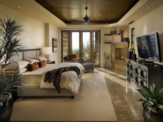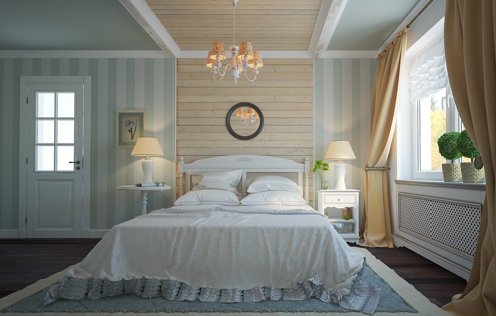 Si nous parlons de la chambre à coucher, vous pouvez sélectionner la tête de lit et une partie du plafond au-dessus, en mettant l’accent sur la zone à dormir. Il est préférable de choisir les ombres calmes, relaxantes, adaptées à la nature et au but de la pièce.