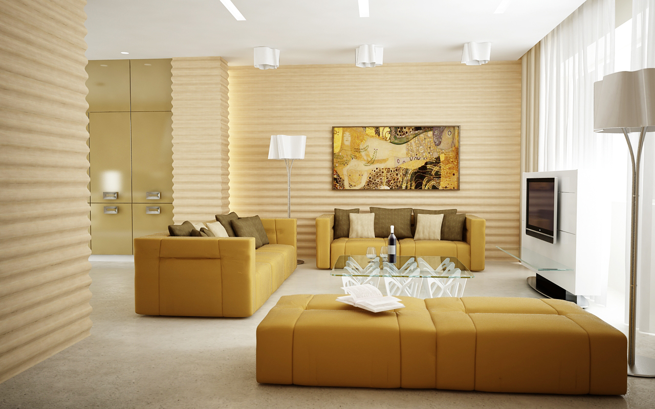 Le salon offre le plus grand champ de fantaisie.Ici, vous pouvez incarner presque toutes les idées. L'essentiel est de suivre les règles générales de composition et de s'assurer que l'intérieur est harmonieux et ne constitue pas une «opposition» à la conception de toutes les autres pièces. Dans la décoration du salon, vous pouvez utiliser à la fois des couleurs vives et pastel, des nuances sombres ou claires, une structure en bois accentuée ou complètement cachée, tous les matériaux de finition.
