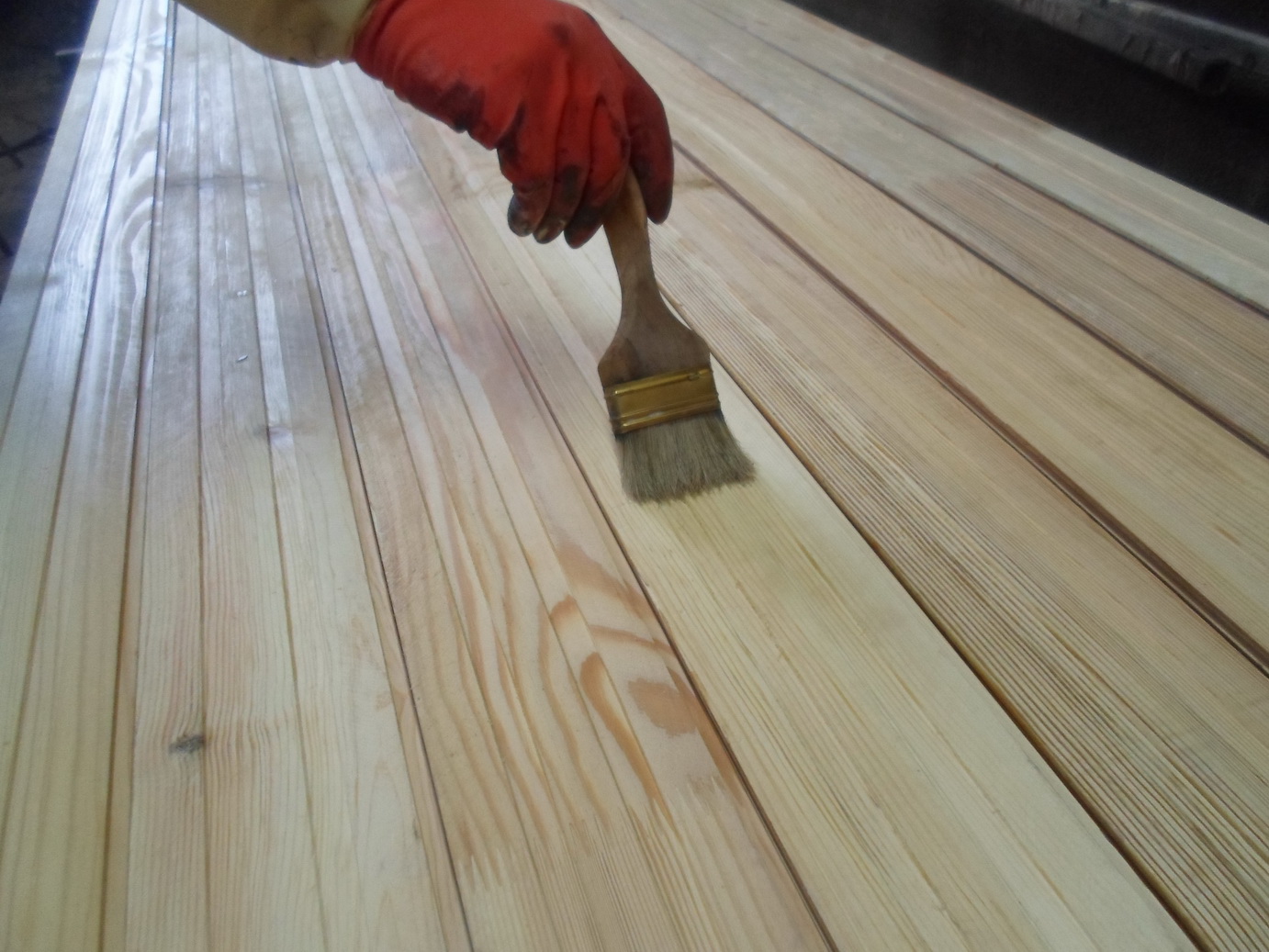 - Traitement.Pour préserver la beauté naturelle du bois et prolonger la durée de vie de la finition, les panneaux sont traités. Le clapboard est recouvert d'un mashinker ou de composés spéciaux de laque et d'émail. Un autre moyen est le brossage. La technique est utilisée lorsqu'il est nécessaire de donner au produit l'effet d'antiquité.