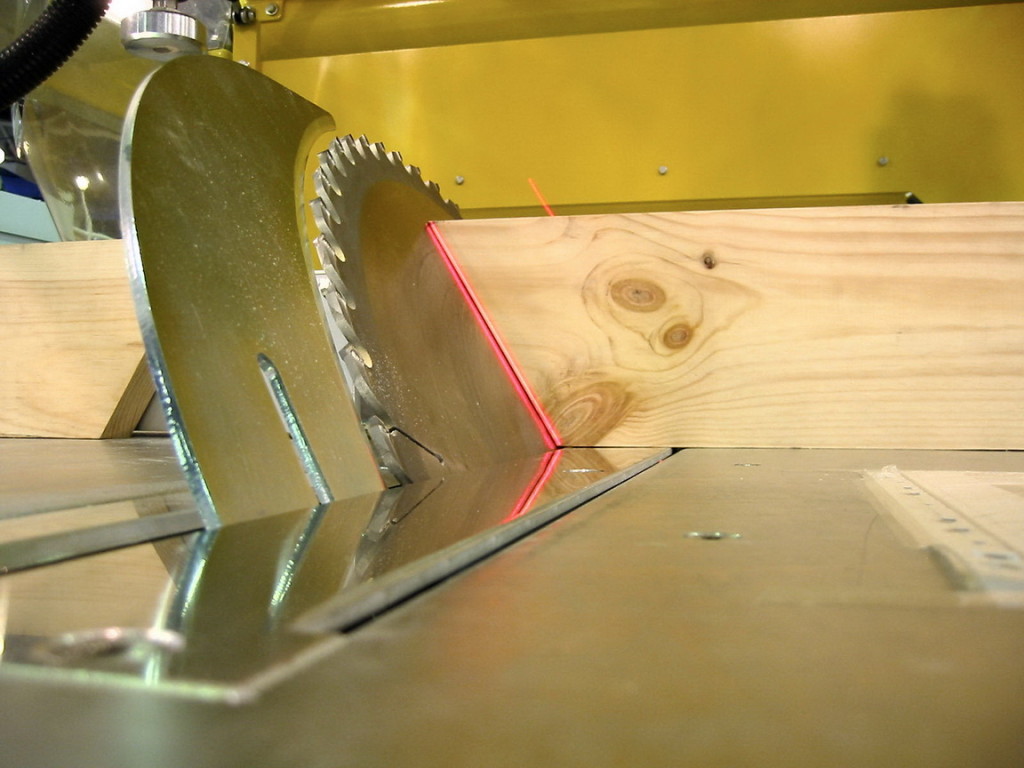 Important: la règle doit être parallèle à la scie. Pour les machines artisanales, vous devez utiliser un carré spécial. Les réglages d'usine ont de telles marques. En outre, les paramètres de l'équipement doivent être vérifiés avec un petit morceau de carton.