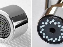 La deuxième chose à laquelle vous devriez prêter attention est le montage sur le bec du robinet. L'appareil peut être à filetage externe ou interne et est sélectionné en fonction du filetage du mélangeur lui-même. Last but not least, il existe des fonctions supplémentaires. Dans la salle de bain, un aérateur rétro-éclairé aura fière allure et, dans la cuisine, toute femme au foyer sera ravie de disposer d'un appareil flexible qui vous permettra de laver confortablement même le plus grand pot dans l'évier.