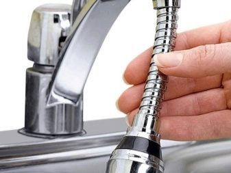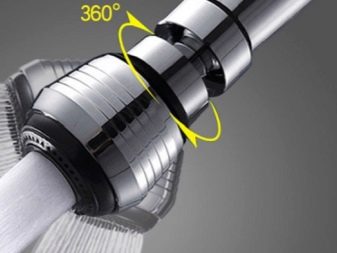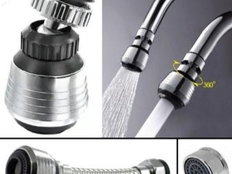 Les aérateurs rotatifs sont également appelés flexibles, car ils peuvent être pivotés dans différentes directions. L'une des variantes d'un tel dispositif est un tuyau flexible allongé spécial, qui est fixé au bec du bec. Un tel dispositif vous permet de collecter du liquide, même dans les récipients qui ne rentrent pas dans la cuvette de l'évier.