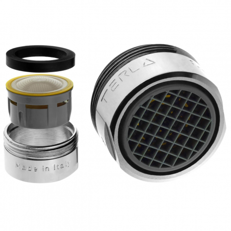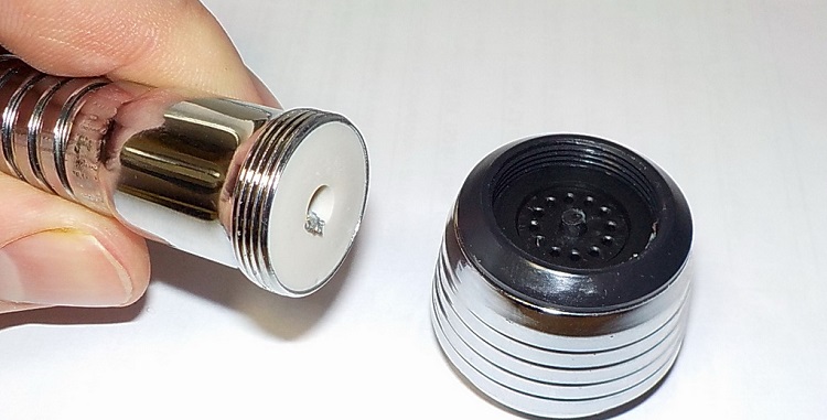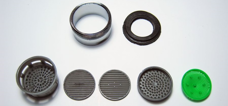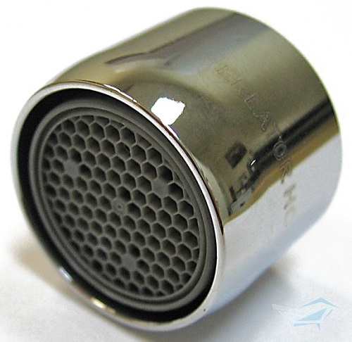 L'aérateur le plus simple est un petit pulvérisateur rond avec un treillis métallique vissé dans le bec du robinet. Aujourd'hui, un tel appareil standard est vendu avec tout mélangeur acheté et, comme le clapet de pied, réduira la consommation d'eau d'au moins 30%.Il durera environ six mois, après quoi un remplacement par un appareil similaire ou plus complexe sera nécessaire.