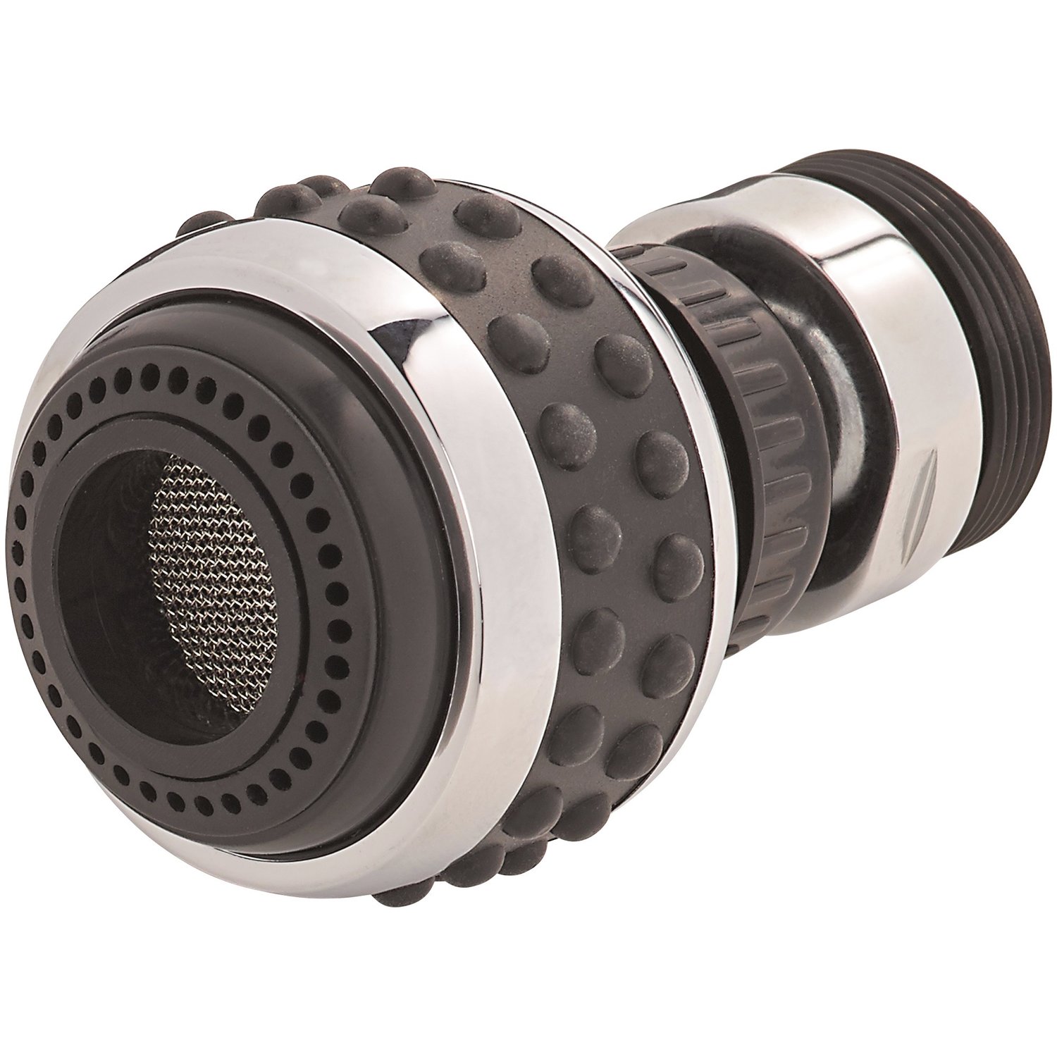 La fonction principale d'un aérateur pour l'eau du robinet est de la saturer de microparticules d'oxygène. Cela non seulement modifie considérablement ses propriétés gustatives pour le meilleur, mais contribue également à une altération plus rapide du chlore, si l'eau de la région est chlorée. De plus, le jet lui-même tombe plus doucement sur le fond de la coque et sur les objets qui y sont placés, ce qui réduit considérablement les éclaboussures de liquide dans l’espace environnant.Si un aérateur rotatif est installé dans la cuisine, le lavage des gros ustensiles de cuisine est simplifié à plusieurs reprises, le flux d'eau réduit sa force de frappe et élimine plus délicatement les agents nettoyants de la surface savonnée.