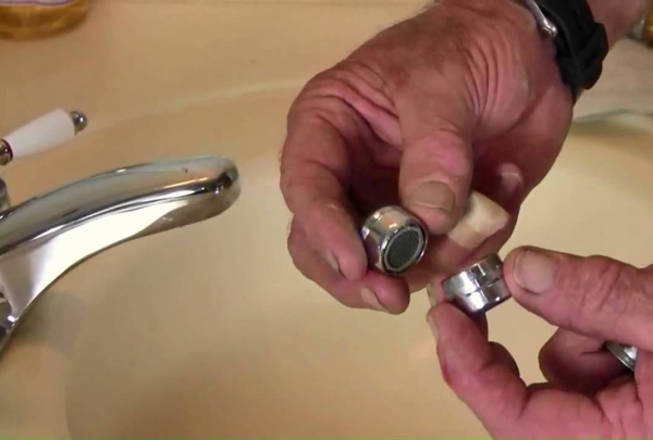 Vous devez d’abord retirer du mélangeur toutes les buses déjà installées dessus. Dévissez le boîtier et retirez le vieux joint en caoutchouc, placez-le sur le bec verseur. La jonction doit être soigneusement nettoyée et lavée, puis laissée sécher légèrement.