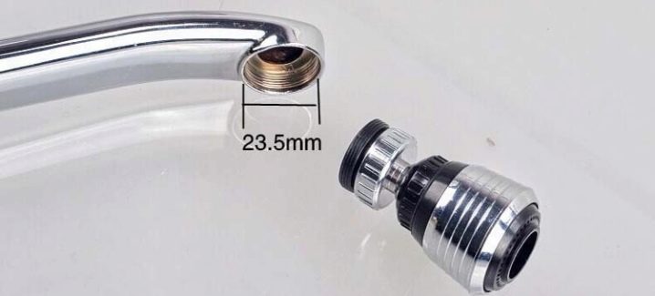 Le plus souvent, trois diamètres de filetage standard sont utilisés: 28/26, 24/22 et 18/16 mm.De cette relation, il s'ensuit que si un filetage externe de 28 mm est utilisé, le filetage interne du même taraud sera de 26 mm. Un autre point important est l'achat d'un aérateur fileté mâle pour le bec externe, respectivement. La même chose est vraie pour le bec interne.
