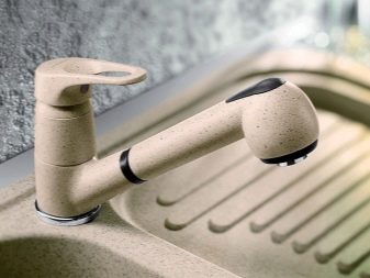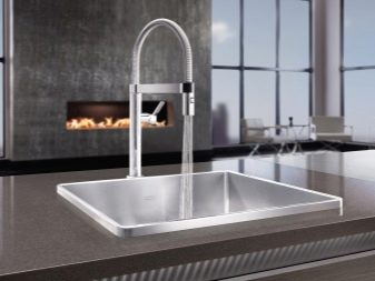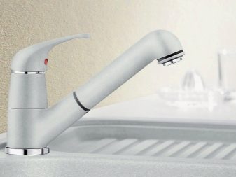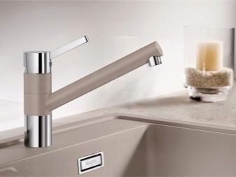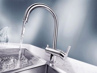 Les appareils à levier unique sont des modèles sans bec verseur. Pour leur production est utilisé chrome, granit. Le bec haut a la capacité de pivoter à 360 degrés. Le point culminant de ce type est le fonctionnement silencieux, la compacité.
