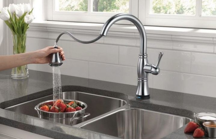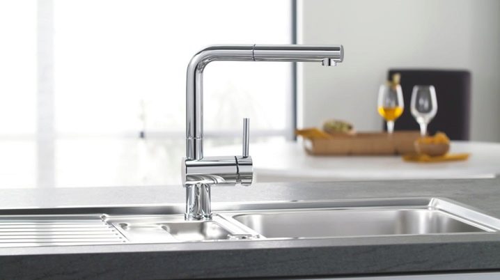 Les appareils à levier unique sont des modèles sans bec verseur. Pour leur fabrication utilisé chrome, granit.Le point culminant de ce type est la présence d'un diviseur breveté qui réduit les dépôts de sel. Inclus sont les tuyaux flexibles, plaque de retenue.