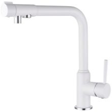 Dans les cuisines peut également être trouvé mélangeur Modèles Teka 13044. Le produit est fabriqué en laiton avec un revêtement blanc. À l'intérieur, il y a une cartouche en céramique, un bec pivotant et une géométrie ordinaire. Vous ne pouvez pas l'intégrer lors de l'installation, l'eye-liner est fabriqué dans un format flexible. La longueur du bec est de 19,5 cm et la hauteur de 27,5 cm.