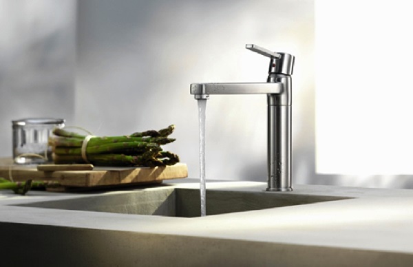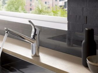 Sur le fond d'un mur lisse, le robinet de douche Kaiser a l'air - vous ne devriez pas avoir peur de ce mot - avec brio. Mais si vous placez l'appareil de la même marque dans la cuisine, sur le fond d'un mur sombre près d'une grande fenêtre, le résultat plaira également aux propriétaires. Les concepteurs allemands ont créé un produit qui pénètre magistralement même dans un environnement aussi complexe. Mais dans cet évier, il y a un appareil direct, comme une tour, pour l'alimentation en eau. La concision et la sévérité leur ont été exprimées aussi complètement que possible.