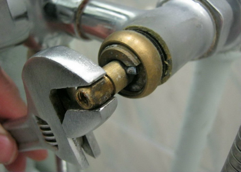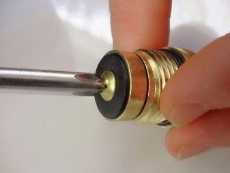 Si le commutateur est à bobine, très souvent, l’écrou qui le tient se casse. Ce problème peut également être résolu seul. Pour ce faire, il est nécessaire de retirer et de désassembler complètement le mélangeur, mais il est très important que tous ses éléments soient déconnectés.Si une inspection de la surface révèle que les filets des écrous sont complètement ou partiellement usés, remplacez-les par un neuf. De manière optimale, si vous le faites en bronze - ce matériau est plus résistant à l'humidité et durable. S'il n'est pas nécessaire de remplacer l'écrou, vous devez le nettoyer avec du papier abrasif, lubrifier tous les éléments du mécanisme avec de la graisse et remonter le mélangeur.