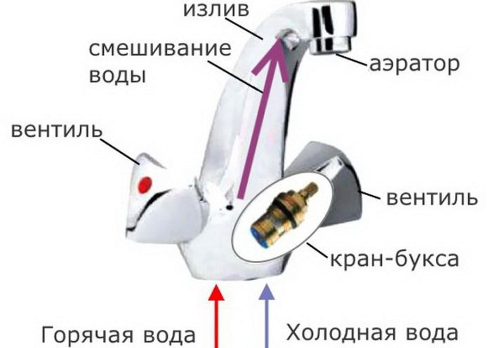 Le mécanisme à deux vannes est considéré comme un analogue d’un dispositif de mélange. Le débit de l’eau est également contrôlé à l’aide de grues-boîtes spéciales, qui sont le plus souvent réalisées sous forme de billes ou de plaques.