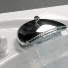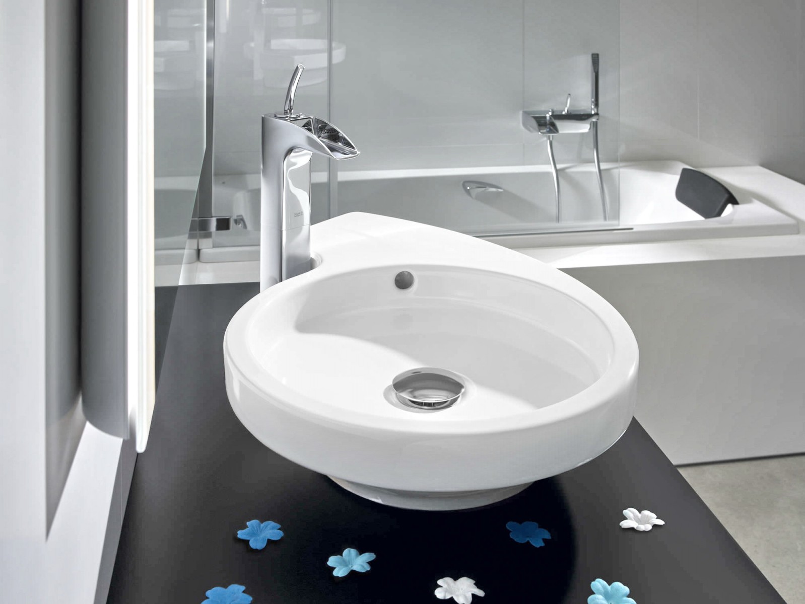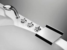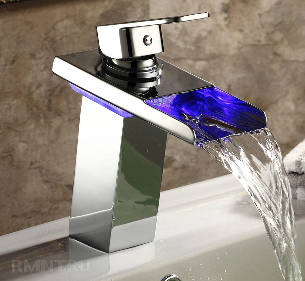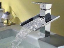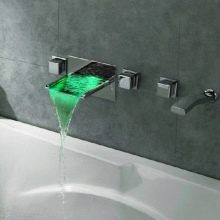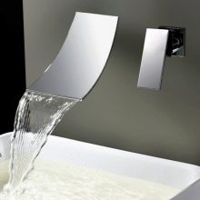 Différents dispositifs en cascade et design. Ils sont disponibles sous différentes formes: sous forme de plaque ovale ou ronde, de rectangle ou de carré, ils ont des plaques courbes ou droites. De plus, la cascade peut être haute et courte. Une grue avec un rétro-éclairage à led est très demandée, son jet est magnifiquement éclairé et peut changer de couleur en fonction de la température de l'eau. Admirez un intérieur moderne avec des tablettes qui servent non seulement d’objet de décoration, mais vous permettent également de placer facilement divers articles d’hygiène.