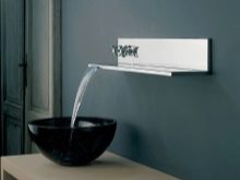 Récemment, lors de la conception d'intérieurs dans la cuisine et dans la salle de bain, la plupart des concepteurs préfèrent les robinets avec un large drain. Ces modèles de cascade sont très différents des robinets ordinaires et, en raison de leur originalité, ils permettent de traduire toute idée en réalité. Par exemple, la tablette de la grue constituera une solution intéressante pour la salle de bain. Il ne laissera rien s'écouler tant que l'eau sera coupée, mais dès que le levier sera ouvert, un large courant apparaîtra de son bord.Un mélangeur monté dans un panneau vertical peut également en être un bon exemple: à l'extérieur, il ne sera pas différent du poêle, mais une petite chute d'eau apparaîtra à tout moment depuis son emplacement étroit.