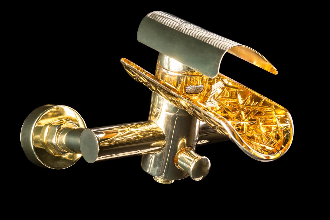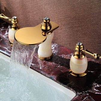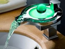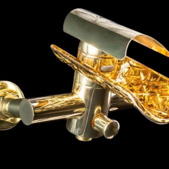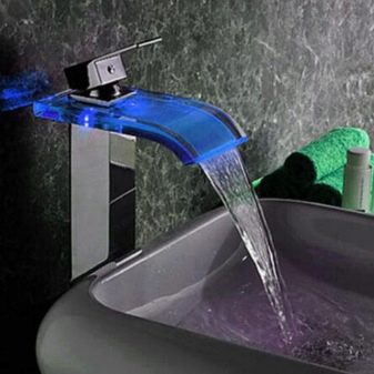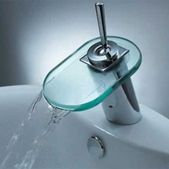 Un mélangeur en verre avec rétro-éclairage multicolore est particulièrement remarquable. Cette conception est coûteuse, car sa production utilise du verre de haute qualité. On trouve également sur le marché des modèles haut de gamme recouverts de dorure ou décorés de pierres précieuses et de marbre. Ils vous permettent de remplir la pièce de luxe, mais pour décorer la pièce avec un produit aussi magnifique, vous devrez payer une somme considérable.