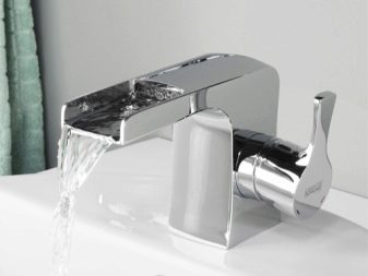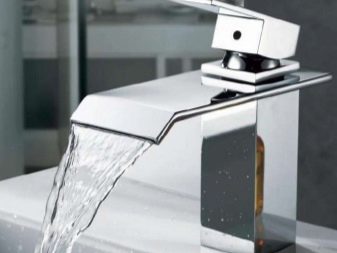 Parmi les autres types de robinets, les cascades se distinguent par la conception particulière du bec. Il manque un mécanisme d'aérateur spécial et, à la fin, une forme plate et plus large, grâce à laquelle un jet d'eau coule abondamment et de manière uniforme, ressemblant à une cascade naturelle. Une autre caractéristique importante est considérée comme un débit élevé, il est possible en raison de l’épaisseur des tubes de gaine qui viennent avec une grue dans la configuration. Pour le reste, ces personnes déplacées ressemblent à bien des égards aux personnes ordinaires.