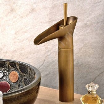 Un rôle énorme dans le choix d'une grue en cascade joue le rôle de matériau qui la compose. Aujourd'hui, les fabricants proposent des produits en bronze et en laiton. De tels alliages, bien que lourds, se caractérisent par une qualité et une durabilité élevées. Dans le même temps, les mélangeurs en bronze nécessitent une protection supplémentaire, car ils peuvent être recouverts en cours de fonctionnement d'une floraison verdâtre difficile à éliminer. Les modèles en laiton, quant à eux, résistent aux processus de corrosion car ils sont recouverts d'un film protecteur en chrome ou en nickel.En outre, la plomberie en laiton a l'air élégante et moderne, sa brillance froide souligne de manière exquise l'intérieur de la salle de bain.