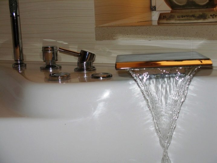 La plupart des robinets à cascade ont une structure fixe sans possibilité de tourner le bec. Ils doivent donc être installés séparément pour la salle de bain et pour le lavabo. À l'intérieur de l'appareil, des cartouches spéciales à section élargie sont responsables de la formation d'un flux large et puissant. La principale caractéristique de ce produit réside dans le fait que l’installation du mécanisme de commande et de la grue est réalisée séparément.L'alimentation en eau de la plomberie est réalisée à l'aide de tuyaux flexibles ou de tuyaux en plastique.