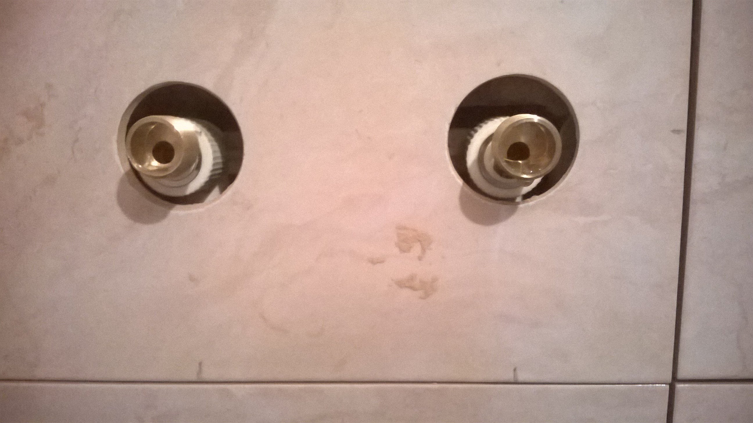 Pour installer la barre de mélange sur des bases en brique ou en béton, vous devez creuser une niche de 4 à 5 cm de profondeur à l'endroit où vous fixez l'appareil, puis marquer et délimiter l'emplacement de la barre avec les emplacements marqués pour les trous de montage. Le balisage est recommandé pour utiliser le niveau de construction, ce qui aidera à placer le dispositif dans une position strictement horizontale.Ensuite, les petits morceaux de tuyaux droits nécessaires au nivellement de la barre lors du serrage et empêchant la solution de pénétrer dans les raccords lors du remplissage ultérieur de la niche doivent être vissés sur les deux prises d’eau. Une fois la planche installée, il est nécessaire de vérifier à nouveau son emplacement avec un niveau et du mastic sur la poche avec une solution épaisse. Après séchage complet du mélange de remplissage, vous pouvez installer le mélangeur.