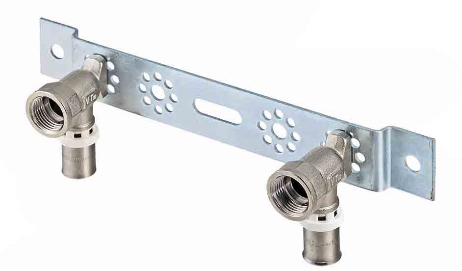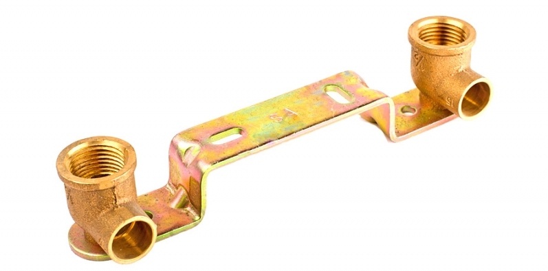 - Les bandes universelles se présentent sous la forme d’un support en métal perforé traversant les trous dans lesquels l’élément est vissé au mur et les points d’eau sont fixés. De tels modèles sont utilisés pour l'installation de mélangeurs non standard ou faits maison, dans les cas où l'entraxe entre les raccords est différent de celui standard. La conception des lattes permet de fixer sur elles les prises d’eau à une distance de 75, 115 et 155 mm l’une de l’autre. De nombreuses perforations permettent d'y installer des fixations centrales, droites et angulaires. Un avantage important de la bande universelle est la possibilité de l'installer au mur à l'aide d'une installation encastrée. Cela vous permet de masquer les pièces du boîtier dans le mur et libère l'intérieur de la salle de bains de l'encombrement excessif des éléments de la canalisation.