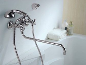 - Pour la douche. Ici, en plus du jars lui-même, il y a une douche pour la douche. Dans ce mode de réalisation, il existe des mélangeurs avec un long bec pivotant et avec un petit diluant statique.
