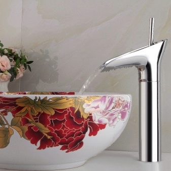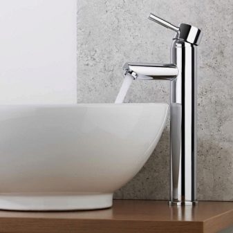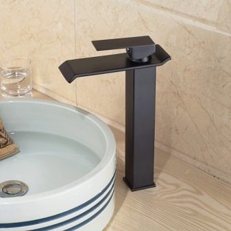 Depuis dans les magasins de plomberie, vous pouvez choisir à la fois des modèles classiques d’éviers-cuvettes ovales et carrés.En plus des produits de design de formes complexes, il est nécessaire de choisir un mélangeur de hauteur élevée de manière à ce qu'il ne soit pas juste de la bonne taille, mais également d'un design approprié. Par exemple, pour les bols arrondis, un mélangeur avec des formes douces et souples convient parfaitement, et avec un rectangle clairement défini, des vannes hexagonales et une brillance de métal chromé seront parfaitement combinées.