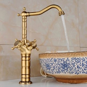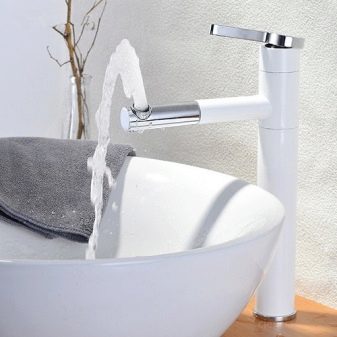 En outre, vous pouvez réaliser une grande grue à partir de divers matériaux. Les produits en laiton chromé constituent la meilleure option, car ils ne sont pas sensibles à l'oxydation et conservent leur aspect d'origine assez longtemps. Grue légèrement moins durable, mais moins chère et moins chère, en acier inoxydable ou en métal non ferreux. La plomberie en polymères dans les maisons modernes n’est pratiquement pas installée - c’est trop peu fiable.Mais la distribution croissante de divers dispositifs de design en verre, pierre multicolore et émail blanc.