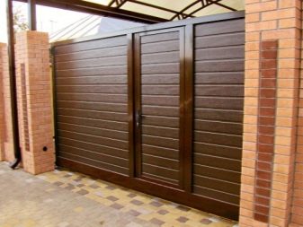 Les types les plus populaires de remplissage Les vannes Alutech sont des panneaux sandwich - la qualité la plus résistante et la plus élevée d'Europe, leur épaisseur est de 4,5 cm (un mastic d'étanchéité en mousse de polyuréthane est présent à l'intérieur). Le design classique - ondulation horizontale, micro-ondes et panneau. Couleurs - du gris démocratique et ses nuances aux imitations luxueuses de cerisier, de chêne foncé et de chêne doré.