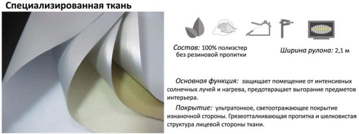 Les stores occultants sont constitués d'un matériau non tissé à trois couches. La première couche externe est généralement blanche ou aussi proche que possible de celle-ci: elle réfléchit la lumière du soleil et ne lui permet pas de pénétrer dans les profondeurs de la pièce. La deuxième couche, au contraire, est de couleur plus foncée et de texture dense. Il retient la chaleur et disperse la lumière qui fuit. La troisième et dernière couche est décorative. C’est l’avant des stores, que nous voyons dans la pièce.