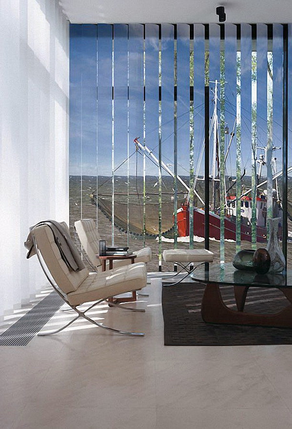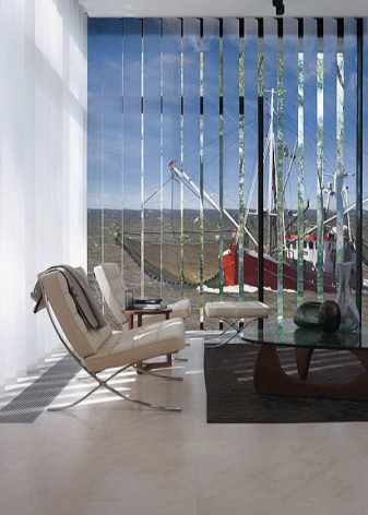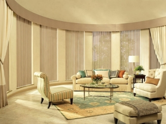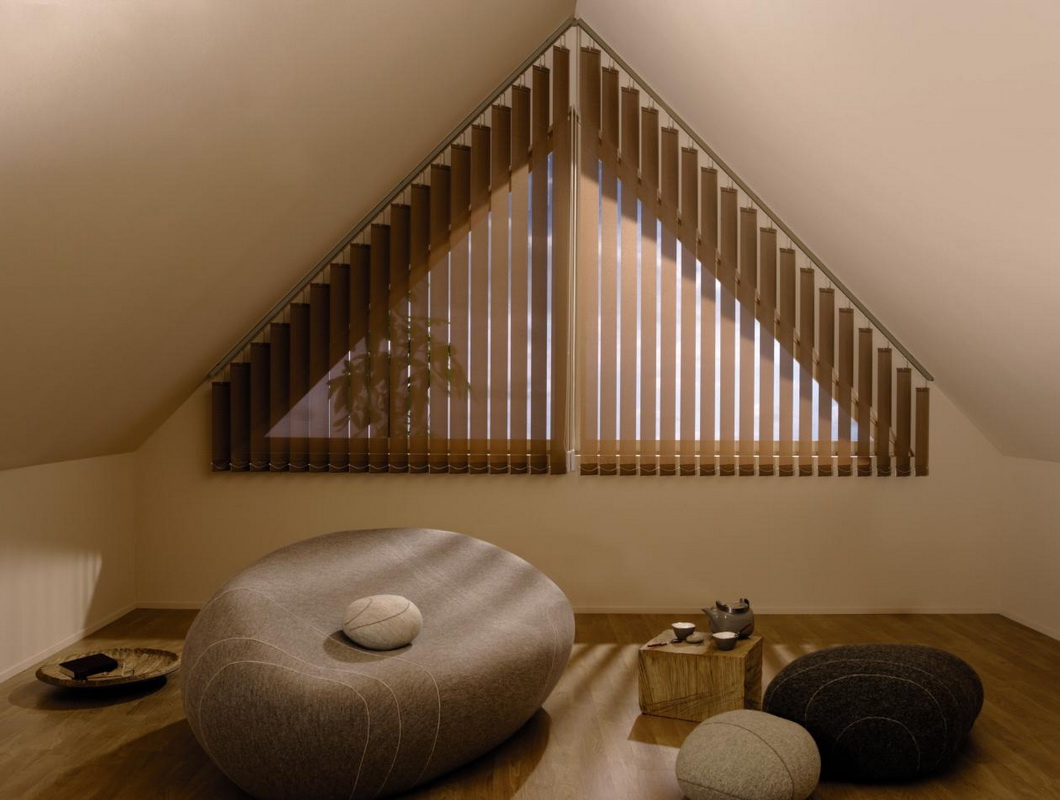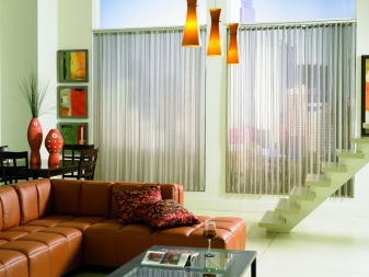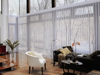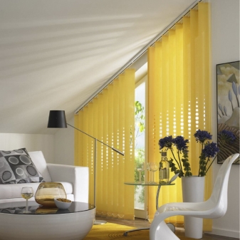 - Le design original de la pièce. Les rideaux verticaux semblent plus confortables et plus intéressants en raison de leur capacité à transmettre la lumière. L'option d'un sol absolument aveugle est également possible.